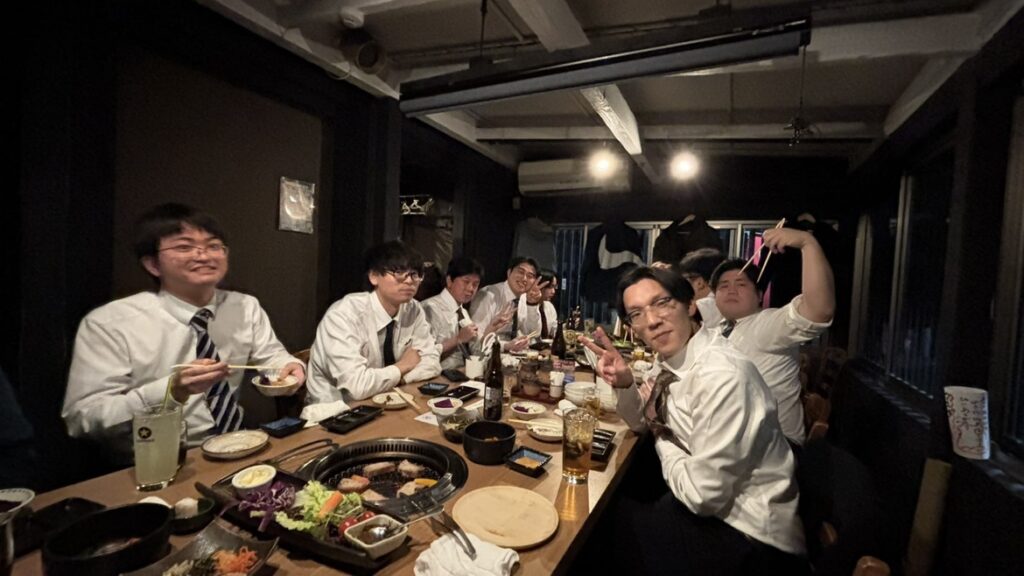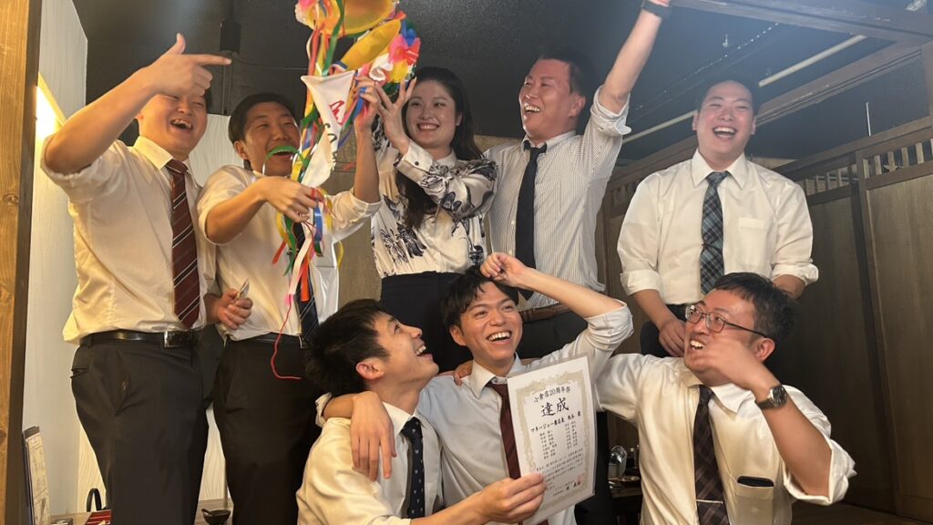食事会では、上司部下全員で達成の喜びを分かち合います!