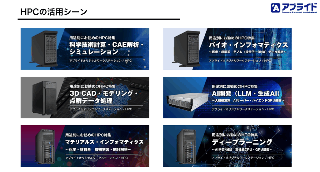 各営業所や店舗で定期的に実施しているビジネスフェアや、企業が開催している展示会にて、製造現場に実際に導入されている外観検査システムやHPCを展示、ご紹介しています。