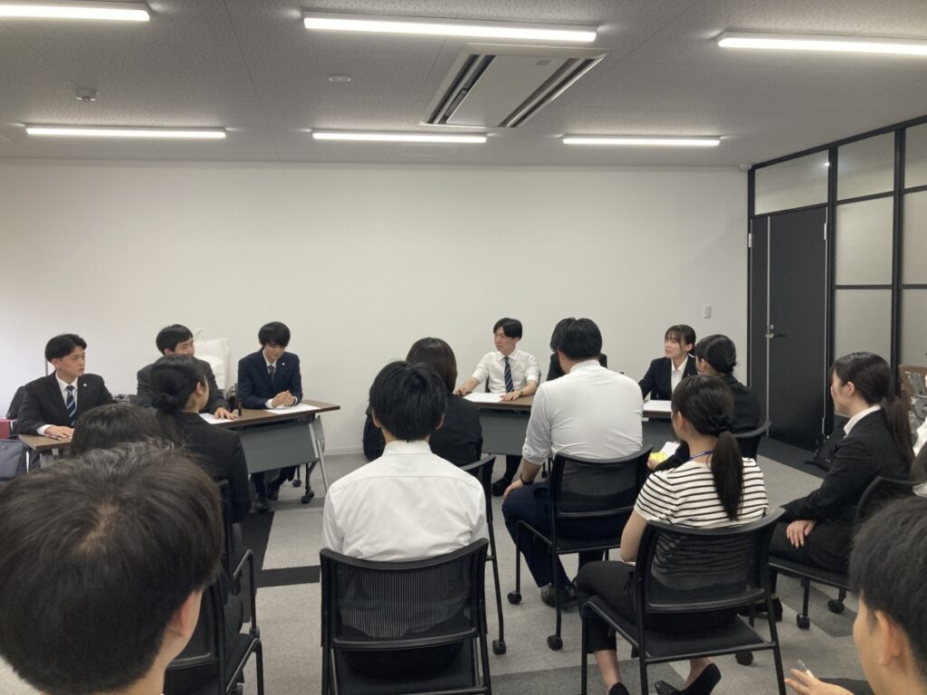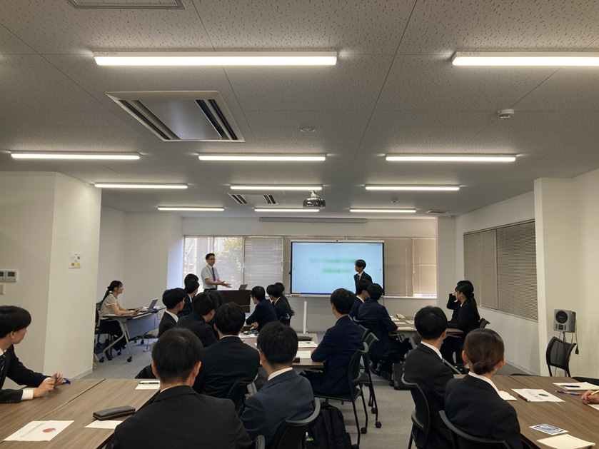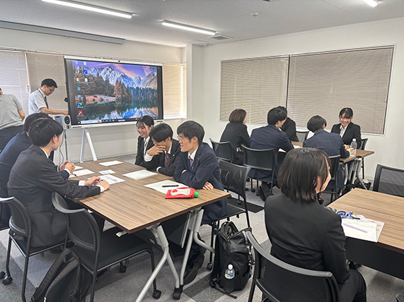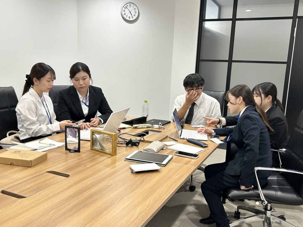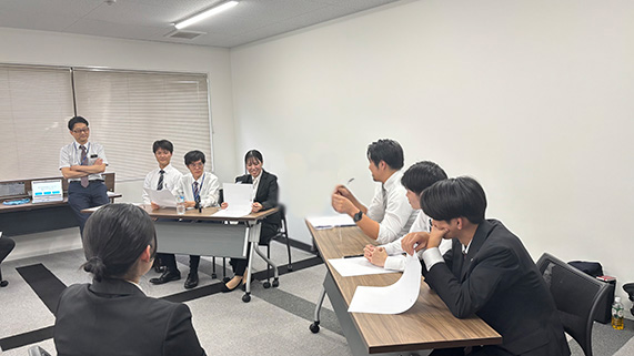 研修中、約4か月間の実務による営業経験をお互いに共有し、実践に近い提案を複数人でディスカッションして発表します。