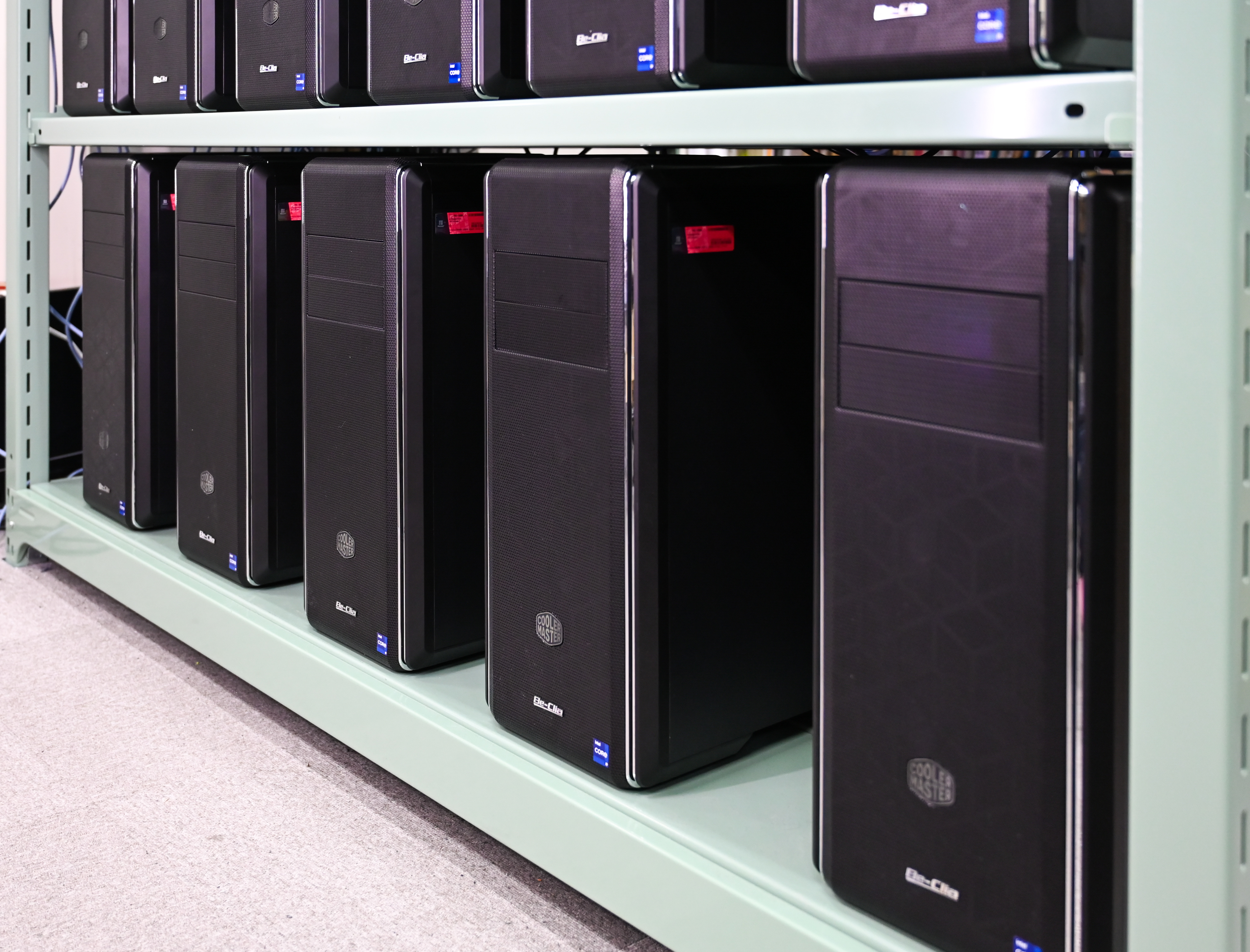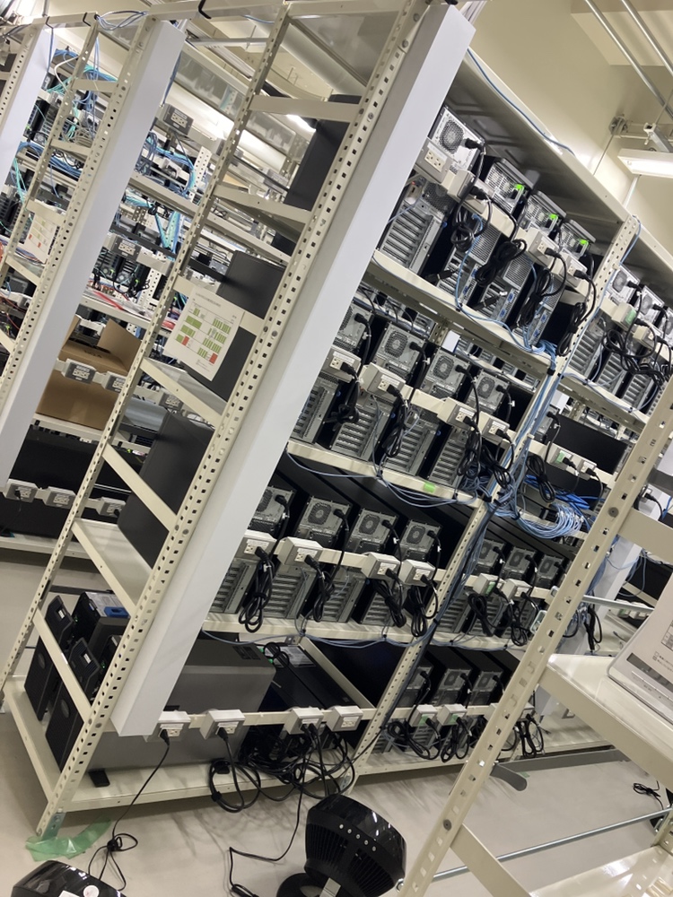 すべてアプライドで製造したコンピューターで、ずらりと並んでいます。1台あたり数百万円するものもあるのだとか。。